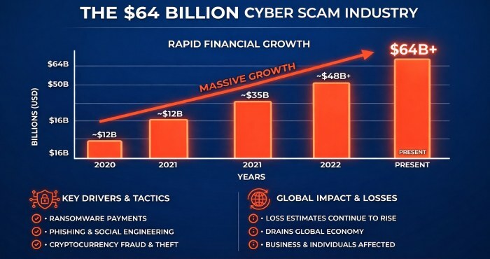 The cyberscam industry in Cambodia has almost reached “industrial proportions.” Experts at the UN Office on Drugs and Crime believe that the scammers make as much as $64 billion. This crime syndicate also includes those people who have been coerced into carrying out scams. They are the victims of human trafficking and are forced to scam innocent people across the globe.