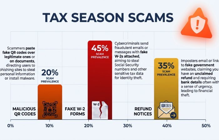 Tax Day is approaching soon (April 15). As taxpayers get busy with tax filing and the relevant intricacies, threat actors misuse the element of urgency and confusion. This year too, the miscreants are abusing filing reminders, refund notices, payroll forms, etc., to trick the taxpayers into scanning malicious QR codes or downloading harmful attachments.