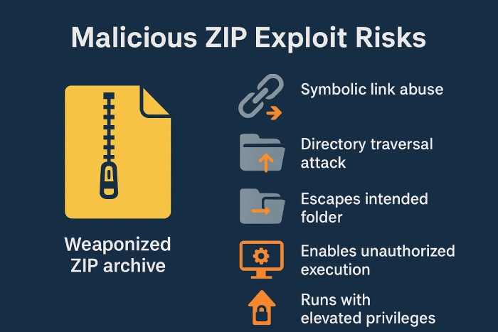 The vulnerability was assigned a CVSS score of 7.0 and works within how 7-Zip handles symbolic links inside ZIP archive files. Basically, threat actors can craft a malicious ZIP archive that exploits this flaw to allow the extraction process to traverse outside its intended folder. This directory traversal can ultimately enable threat actors to execute unauthorized code on the infected system, running it with the privileges of a service account or an elevated user.