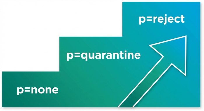 - Start under p=none for safe observation, then move toward p=reject once authorized sending sources are fully aligned and DMARC compliance is steady.