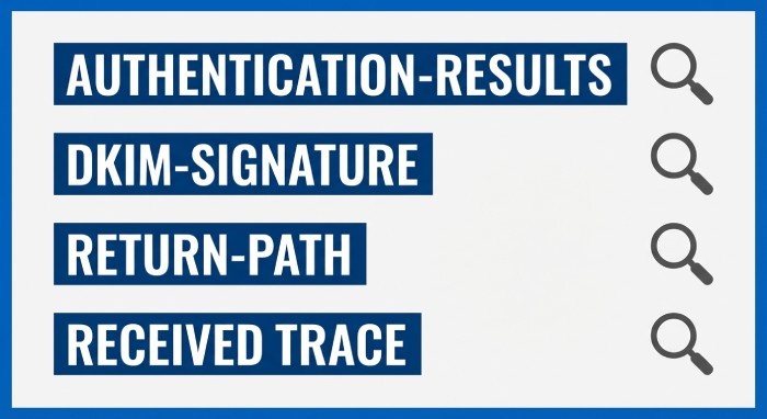 - The Return-path header to validate the Envelope-From versus From domain, which determines SPF alignment.
