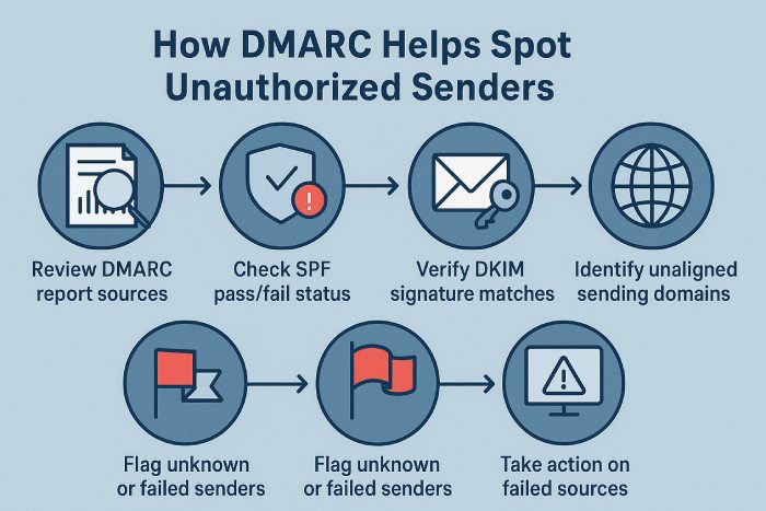 DMARC helps you find that out. It gives you reports that tell which sources are passing authentication and which ones aren’t. This lets you spot unauthorized senders, fix any issues with genuine ones, and make sure only trusted systems are allowed to use your domain.