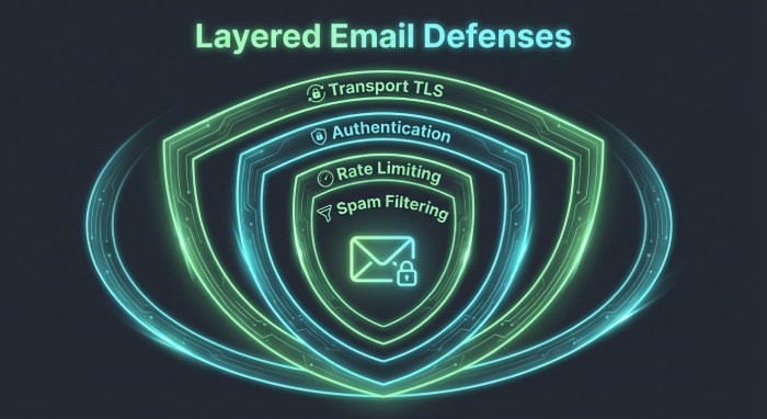 - Layer anti-spam controls (Rspamd/SpamAssassin, ClamAV, greylisting) and enforce strong SMTP AUTH to protect users and reputation.