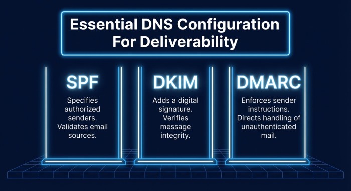 DNS configuration is where mail deliverability is won or lost. Publish DNS records meticulously and validate everything twice.