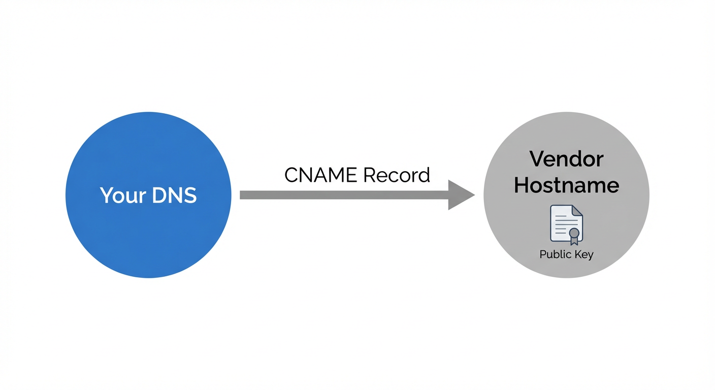 - Use CNAME record delegation for vendors so they can rotate the key pair without DNS “freeze,” while you maintain control at the domain registrar.