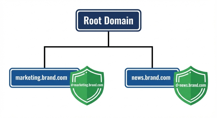 - It ensures the receiving server can verify message signature alignment at the correct scope, improving email deliverability and simplifying incident response.