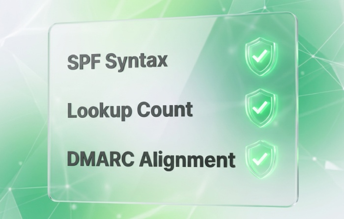 SPF validation should be part of routine email authentication hygiene, alongside DMARC and DKIM. Use an SPF check to confirm you have only one SPF record per host, that your SPF syntax is correct, and that DNS lookups remain within limits.